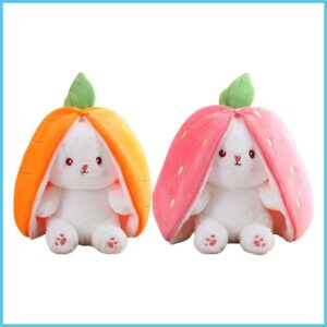 ตุ๊กตากระต่ายสตรอเบอร์รี่น่ารัก ผ้ากํามะหยี่ขนนิ่ม ซ่อนได้ สําหรับตกแต่งบ้าน โซฟา ของขวัญวันเกิด