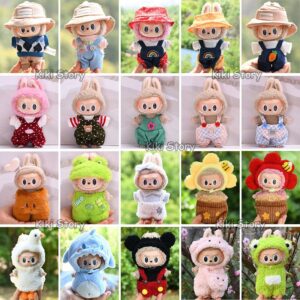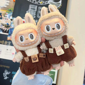 17 ซม.จี้ Labubu เสื้อผ้าเด็ก Mystery Box Labubu เสื้อผ้าหมีสีน้ําตาล Overalls น่ารัก