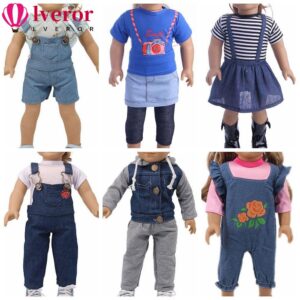 LVEROR เสื้อผ้าตุ๊กตา เสื้อยืด กางเกงขายาว 18 นิ้ว 43 ซม. อุปกรณ์เสริม สําหรับบ้านตุ๊กตา